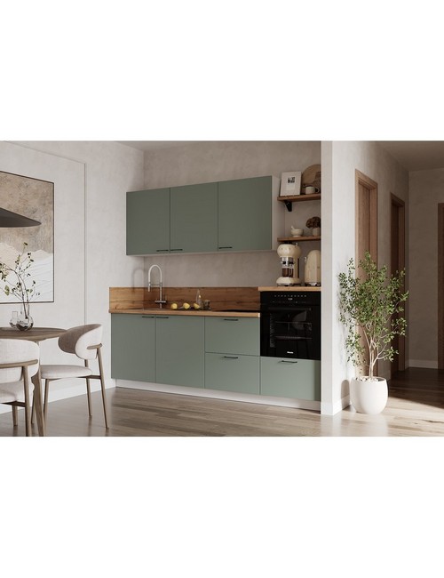 Технические характеристики: Кухонный гарнитур 2400 Олива эмаль вариант 4. Роскошный кухонный гарнитур с безупречными линиями и гармоничными пропорциями. Благородная палитра оттенков, выразительная текстура дерева и сдержанная эстетика, создающая атмосферу уюта и порядка. Направляющие Firmax с повышенным запасом прочности - свыше 60 000 циклов. Усиленные механизмы, выдерживающие нагрузку более 30 кг. Бесшумная и плавная работа всех движущихся элементов. Встроенная система Push to Open для скрытых ящиков, усиленное дно внутренних модулей для повышенной надежности. Высокий модуль под духовой шкаф для современного зонирования и регулируемые опоры для идеальной устойчивости. Цельная столешница без видимых стыков для простоты ухода, сменные металлические ручки, не требующие пересверливания. В кухонном гарнитуре 2400 Олива эмаль вариант 4 коллекции Лизет каждая деталь, от премиальной фурнитуры до бесшовных поверхностей, создает кухню, которая станет не только функциональным пространством, но и источником вдохновения для всей семьи.