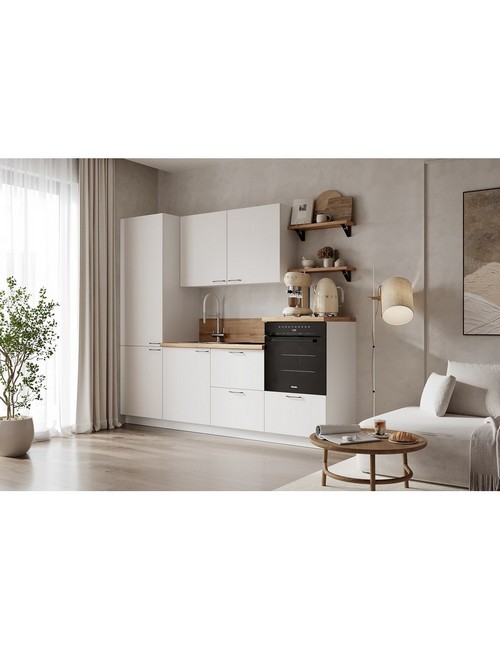Технические характеристики: Кухонный гарнитур 2400 вариант 7 Лизет (белый софт матовый). Роскошный кухонный гарнитур с безупречными линиями и гармоничными пропорциями. Благородная палитра оттенков, выразительная текстура дерева и сдержанная эстетика, создающая атмосферу уюта и порядка. Направляющие Firmax с повышенным запасом прочности - свыше 60 000 циклов. Усиленные механизмы, выдерживающие нагрузку более 30 кг. Бесшумная и плавная работа всех движущихся элементов. Встроенная система Push to Open для скрытых ящиков, усиленное дно внутренних модулей для повышенной надежности. Высокий модуль под духовой шкаф для современного зонирования и регулируемые опоры для идеальной устойчивости. Цельная столешница без видимых стыков для простоты ухода, сменные металлические ручки, не требующие пересверливания. В кухонном гарнитуре 2400 вариант 7 коллекции Лизет каждая деталь, от премиальной фурнитуры до бесшовных поверхностей, создает кухню, которая станет не только функциональным пространством, но и источником вдохновения для всей семьи.