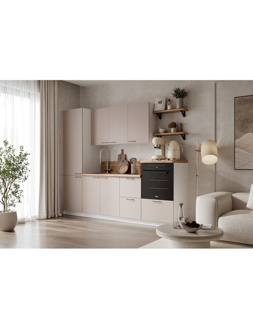 Технические характеристики: Кухонный гарнитур 2550 Магнолия ПВХ вариант 10. Роскошный кухонный гарнитур с безупречными линиями и гармоничными пропорциями. Благородная палитра оттенков, выразительная текстура дерева и сдержанная эстетика, создающая атмосферу уюта и порядка. Направляющие Firmax с повышенным запасом прочности - свыше 60 000 циклов. Усиленные механизмы, выдерживающие нагрузку более 30 кг. Бесшумная и плавная работа всех движущихся элементов. Встроенная система Push to Open для скрытых ящиков, усиленное дно внутренних модулей для повышенной надежности. Высокий модуль под духовой шкаф для современного зонирования и регулируемые опоры для идеальной устойчивости. Цельная столешница без видимых стыков для простоты ухода, сменные металлические ручки, не требующие пересверливания. В кухонном гарнитуре 2550 Магнолия ПВХ вариант 10 коллекции Лизет каждая деталь, от премиальной фурнитуры до бесшовных поверхностей, создает кухню, которая станет не только функциональным пространством, но и источником вдохновения для всей семьи.
