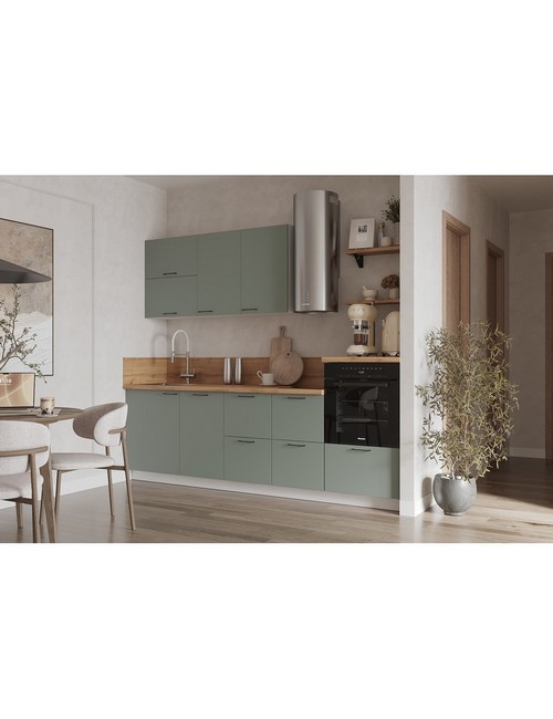 Технические характеристики: Кухонный гарнитур 2550 Олива эмаль вариант 2. Роскошный кухонный гарнитур с безупречными линиями и гармоничными пропорциями. Благородная палитра оттенков, выразительная текстура дерева и сдержанная эстетика, создающая атмосферу уюта и порядка. Направляющие Firmax с повышенным запасом прочности - свыше 60 000 циклов. Усиленные механизмы, выдерживающие нагрузку более 30 кг. Бесшумная и плавная работа всех движущихся элементов. Встроенная система Push to Open для скрытых ящиков, усиленное дно внутренних модулей для повышенной надежности. Высокий модуль под духовой шкаф для современного зонирования и регулируемые опоры для идеальной устойчивости. Цельная столешница без видимых стыков для простоты ухода, сменные металлические ручки, не требующие пересверливания. В кухонном гарнитуре 2550 Олива эмаль вариант 2 коллекции Лизет каждая деталь, от премиальной фурнитуры до бесшовных поверхностей, создает кухню, которая станет не только функциональным пространством, но и источником вдохновения для всей семьи.