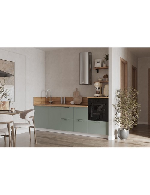Технические характеристики: Кухонный гарнитур 2550 Олива эмаль вариант 3. Роскошный кухонный гарнитур с безупречными линиями и гармоничными пропорциями. Благородная палитра оттенков, выразительная текстура дерева и сдержанная эстетика, создающая атмосферу уюта и порядка. Направляющие Firmax с повышенным запасом прочности - свыше 60 000 циклов. Усиленные механизмы, выдерживающие нагрузку более 30 кг. Бесшумная и плавная работа всех движущихся элементов. Встроенная система Push to Open для скрытых ящиков, усиленное дно внутренних модулей для повышенной надежности. Высокий модуль под духовой шкаф для современного зонирования и регулируемые опоры для идеальной устойчивости. Цельная столешница без видимых стыков для простоты ухода, сменные металлические ручки, не требующие пересверливания. В кухонном гарнитуре 2550 Олива эмаль вариант 3 коллекции Лизет каждая деталь, от премиальной фурнитуры до бесшовных поверхностей, создает кухню, которая станет не только функциональным пространством, но и источником вдохновения для всей семьи.