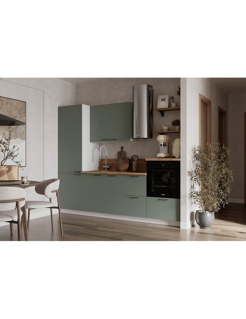 Технические характеристики: Кухонный гарнитур 2550 Олива эмаль вариант 8. Роскошный кухонный гарнитур с безупречными линиями и гармоничными пропорциями. Благородная палитра оттенков, выразительная текстура дерева и сдержанная эстетика, создающая атмосферу уюта и порядка. Направляющие Firmax с повышенным запасом прочности - свыше 60 000 циклов. Усиленные механизмы, выдерживающие нагрузку более 30 кг. Бесшумная и плавная работа всех движущихся элементов. Встроенная система Push to Open для скрытых ящиков, усиленное дно внутренних модулей для повышенной надежности. Высокий модуль под духовой шкаф для современного зонирования и регулируемые опоры для идеальной устойчивости. Цельная столешница без видимых стыков для простоты ухода, сменные металлические ручки, не требующие пересверливания. В кухонном гарнитуре 2550 Олива эмаль вариант 8 коллекции Лизет каждая деталь, от премиальной фурнитуры до бесшовных поверхностей, создает кухню, которая станет не только функциональным пространством, но и источником вдохновения для всей семьи.