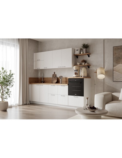 Технические характеристики: Кухонный гарнитур 2550 вариант 4 Лизет (белый софт матовый). Роскошный кухонный гарнитур с безупречными линиями и гармоничными пропорциями. Благородная палитра оттенков, выразительная текстура дерева и сдержанная эстетика, создающая атмосферу уюта и порядка. Направляющие Firmax с повышенным запасом прочности - свыше 60 000 циклов. Усиленные механизмы, выдерживающие нагрузку более 30 кг. Бесшумная и плавная работа всех движущихся элементов. Встроенная система Push to Open для скрытых ящиков, усиленное дно внутренних модулей для повышенной надежности. Высокий модуль под духовой шкаф для современного зонирования и регулируемые опоры для идеальной устойчивости. Цельная столешница без видимых стыков для простоты ухода, сменные металлические ручки, не требующие пересверливания. В кухонном гарнитуре 2550 вариант 4 коллекции Лизет каждая деталь, от премиальной фурнитуры до бесшовных поверхностей, создает кухню, которая станет не только функциональным пространством, но и источником вдохновения для всей семьи.