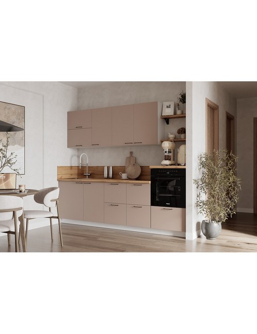 Технические характеристики: Кухонный гарнитур 2550 вариант 4 Лизет (крем). Роскошный кухонный гарнитур с безупречными линиями и гармоничными пропорциями. Благородная палитра оттенков, выразительная текстура дерева и сдержанная эстетика, создающая атмосферу уюта и порядка. Направляющие Firmax с повышенным запасом прочности - свыше 60 000 циклов. Усиленные механизмы, выдерживающие нагрузку более 30 кг. Бесшумная и плавная работа всех движущихся элементов. Встроенная система Push to Open для скрытых ящиков, усиленное дно внутренних модулей для повышенной надежности. Высокий модуль под духовой шкаф для современного зонирования и регулируемые опоры для идеальной устойчивости. Цельная столешница без видимых стыков для простоты ухода, сменные металлические ручки, не требующие пересверливания. В кухонном гарнитуре 2550 вариант 4 коллекции Лизет каждая деталь, от премиальной фурнитуры до бесшовных поверхностей, создает кухню, которая станет не только функциональным пространством, но и источником вдохновения для всей семьи.