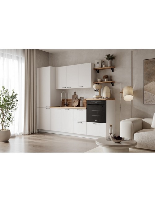 Технические характеристики: Кухонный гарнитур 2550 вариант 7 Лизет (белый софт матовый). Роскошный кухонный гарнитур с безупречными линиями и гармоничными пропорциями. Благородная палитра оттенков, выразительная текстура дерева и сдержанная эстетика, создающая атмосферу уюта и порядка. Направляющие Firmax с повышенным запасом прочности - свыше 60 000 циклов. Усиленные механизмы, выдерживающие нагрузку более 30 кг. Бесшумная и плавная работа всех движущихся элементов. Встроенная система Push to Open для скрытых ящиков, усиленное дно внутренних модулей для повышенной надежности. Высокий модуль под духовой шкаф для современного зонирования и регулируемые опоры для идеальной устойчивости. Цельная столешница без видимых стыков для простоты ухода, сменные металлические ручки, не требующие пересверливания. В кухонном гарнитуре 2550 вариант 7 коллекции Лизет каждая деталь, от премиальной фурнитуры до бесшовных поверхностей, создает кухню, которая станет не только функциональным пространством, но и источником вдохновения для всей семьи.