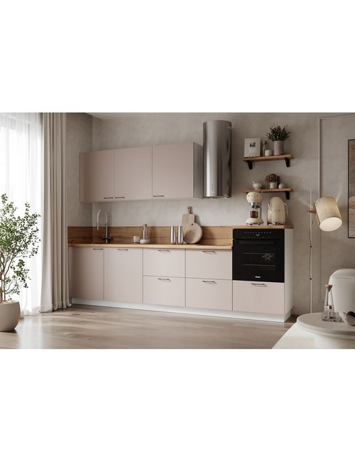 Технические характеристики: Кухонный гарнитур 3000 Магнолия ПВХ вариант 2. Роскошный кухонный гарнитур с безупречными линиями и гармоничными пропорциями. Благородная палитра оттенков, выразительная текстура дерева и сдержанная эстетика, создающая атмосферу уюта и порядка. Направляющие Firmax с повышенным запасом прочности - свыше 60 000 циклов. Усиленные механизмы, выдерживающие нагрузку более 30 кг. Бесшумная и плавная работа всех движущихся элементов. Встроенная система Push to Open для скрытых ящиков, усиленное дно внутренних модулей для повышенной надежности. Высокий модуль под духовой шкаф для современного зонирования и регулируемые опоры для идеальной устойчивости. Цельная столешница без видимых стыков для простоты ухода, сменные металлические ручки, не требующие пересверливания. В кухонном гарнитуре 3000 Магнолия ПВХ вариант 2 коллекции Лизет каждая деталь, от премиальной фурнитуры до бесшовных поверхностей, создает кухню, которая станет не только функциональным пространством, но и источником вдохновения для всей семьи.