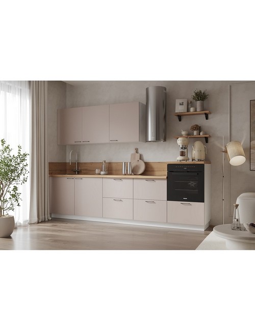 Технические характеристики: Кухонный гарнитур 3000 Магнолия ПВХ вариант 5. Роскошный кухонный гарнитур с безупречными линиями и гармоничными пропорциями. Благородная палитра оттенков, выразительная текстура дерева и сдержанная эстетика, создающая атмосферу уюта и порядка. Направляющие Firmax с повышенным запасом прочности - свыше 60 000 циклов. Усиленные механизмы, выдерживающие нагрузку более 30 кг. Бесшумная и плавная работа всех движущихся элементов. Встроенная система Push to Open для скрытых ящиков, усиленное дно внутренних модулей для повышенной надежности. Высокий модуль под духовой шкаф для современного зонирования и регулируемые опоры для идеальной устойчивости. Цельная столешница без видимых стыков для простоты ухода, сменные металлические ручки, не требующие пересверливания. В кухонном гарнитуре 3000 Магнолия ПВХ вариант 5 коллекции Лизет каждая деталь, от премиальной фурнитуры до бесшовных поверхностей, создает кухню, которая станет не только функциональным пространством, но и источником вдохновения для всей семьи.