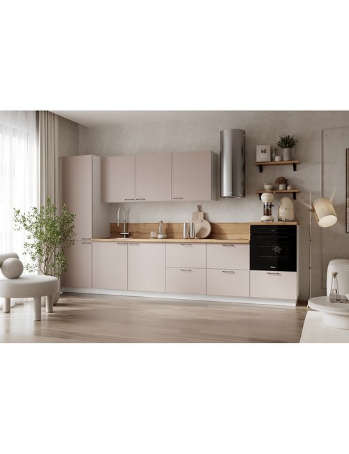 Технические характеристики: Кухонный гарнитур 3600 Магнолия ПВХ вариант 11. Роскошный кухонный гарнитур с безупречными линиями и гармоничными пропорциями. Благородная палитра оттенков, выразительная текстура дерева и сдержанная эстетика, создающая атмосферу уюта и порядка. Направляющие Firmax с повышенным запасом прочности - свыше 60 000 циклов. Усиленные механизмы, выдерживающие нагрузку более 30 кг. Бесшумная и плавная работа всех движущихся элементов. Встроенная система Push to Open для скрытых ящиков, усиленное дно внутренних модулей для повышенной надежности. Высокий модуль под духовой шкаф для современного зонирования и регулируемые опоры для идеальной устойчивости. Цельная столешница без видимых стыков для простоты ухода, сменные металлические ручки, не требующие пересверливания. В кухонном гарнитуре 3600 Магнолия ПВХ вариант 11 коллекции Лизет каждая деталь, от премиальной фурнитуры до бесшовных поверхностей, создает кухню, которая станет не только функциональным пространством, но и источником вдохновения для всей семьи.