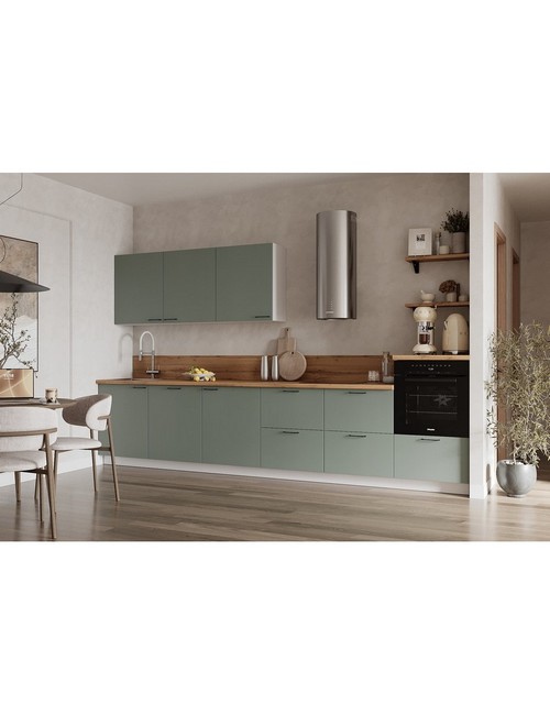 Технические характеристики: Кухонный гарнитур 3600 Олива эмаль вариант 2. Роскошный кухонный гарнитур с безупречными линиями и гармоничными пропорциями. Благородная палитра оттенков, выразительная текстура дерева и сдержанная эстетика, создающая атмосферу уюта и порядка. Направляющие Firmax с повышенным запасом прочности - свыше 60 000 циклов. Усиленные механизмы, выдерживающие нагрузку более 30 кг. Бесшумная и плавная работа всех движущихся элементов. Встроенная система Push to Open для скрытых ящиков, усиленное дно внутренних модулей для повышенной надежности. Высокий модуль под духовой шкаф для современного зонирования и регулируемые опоры для идеальной устойчивости. Цельная столешница без видимых стыков для простоты ухода, сменные металлические ручки, не требующие пересверливания. В кухонном гарнитуре 3600 Олива эмаль вариант 2 коллекции Лизет каждая деталь, от премиальной фурнитуры до бесшовных поверхностей, создает кухню, которая станет не только функциональным пространством, но и источником вдохновения для всей семьи.