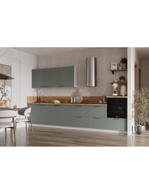 Технические характеристики: Кухонный гарнитур 3600 Олива эмаль вариант 5. Роскошный кухонный гарнитур с безупречными линиями и гармоничными пропорциями. Благородная палитра оттенков, выразительная текстура дерева и сдержанная эстетика, создающая атмосферу уюта и порядка. Направляющие Firmax с повышенным запасом прочности - свыше 60 000 циклов. Усиленные механизмы, выдерживающие нагрузку более 30 кг. Бесшумная и плавная работа всех движущихся элементов. Встроенная система Push to Open для скрытых ящиков, усиленное дно внутренних модулей для повышенной надежности. Высокий модуль под духовой шкаф для современного зонирования и регулируемые опоры для идеальной устойчивости. Цельная столешница без видимых стыков для простоты ухода, сменные металлические ручки, не требующие пересверливания. В кухонном гарнитуре 3600 Олива эмаль вариант 5 коллекции Лизет каждая деталь, от премиальной фурнитуры до бесшовных поверхностей, создает кухню, которая станет не только функциональным пространством, но и источником вдохновения для всей семьи.