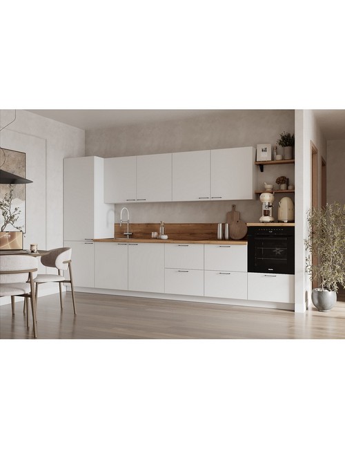 Технические характеристики: Кухонный гарнитур 3600 вариант 10 Лизет (белый). Роскошный кухонный гарнитур с безупречными линиями и гармоничными пропорциями. Благородная палитра оттенков, выразительная текстура дерева и сдержанная эстетика, создающая атмосферу уюта и порядка. Направляющие Firmax с повышенным запасом прочности - свыше 60 000 циклов. Усиленные механизмы, выдерживающие нагрузку более 30 кг. Бесшумная и плавная работа всех движущихся элементов. Встроенная система Push to Open для скрытых ящиков, усиленное дно внутренних модулей для повышенной надежности. Высокий модуль под духовой шкаф для современного зонирования и регулируемые опоры для идеальной устойчивости. Цельная столешница без видимых стыков для простоты ухода, сменные металлические ручки, не требующие пересверливания. В кухонном гарнитуре 3600 вариант 10 коллекции Лизет каждая деталь, от премиальной фурнитуры до бесшовных поверхностей, создает кухню, которая станет не только функциональным пространством, но и источником вдохновения для всей семьи.