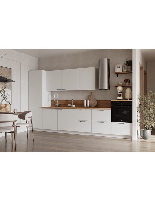 Технические характеристики: Кухонный гарнитур 3600 вариант 11 Лизет (белый). Роскошный кухонный гарнитур с безупречными линиями и гармоничными пропорциями. Благородная палитра оттенков, выразительная текстура дерева и сдержанная эстетика, создающая атмосферу уюта и порядка. Направляющие Firmax с повышенным запасом прочности - свыше 60 000 циклов. Усиленные механизмы, выдерживающие нагрузку более 30 кг. Бесшумная и плавная работа всех движущихся элементов. Встроенная система Push to Open для скрытых ящиков, усиленное дно внутренних модулей для повышенной надежности. Высокий модуль под духовой шкаф для современного зонирования и регулируемые опоры для идеальной устойчивости. Цельная столешница без видимых стыков для простоты ухода, сменные металлические ручки, не требующие пересверливания. В кухонном гарнитуре 3600 вариант 11 коллекции Лизет каждая деталь, от премиальной фурнитуры до бесшовных поверхностей, создает кухню, которая станет не только функциональным пространством, но и источником вдохновения для всей семьи.