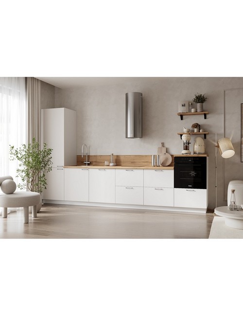 Технические характеристики: Кухонный гарнитур 3600 вариант 9 Лизет (белый софт матовый). Роскошный кухонный гарнитур с безупречными линиями и гармоничными пропорциями. Благородная палитра оттенков, выразительная текстура дерева и сдержанная эстетика, создающая атмосферу уюта и порядка. Направляющие Firmax с повышенным запасом прочности - свыше 60 000 циклов. Усиленные механизмы, выдерживающие нагрузку более 30 кг. Бесшумная и плавная работа всех движущихся элементов. Встроенная система Push to Open для скрытых ящиков, усиленное дно внутренних модулей для повышенной надежности. Высокий модуль под духовой шкаф для современного зонирования и регулируемые опоры для идеальной устойчивости. Цельная столешница без видимых стыков для простоты ухода, сменные металлические ручки, не требующие пересверливания. В кухонном гарнитуре 3600 вариант 9 коллекции Лизет каждая деталь, от премиальной фурнитуры до бесшовных поверхностей, создает кухню, которая станет не только функциональным пространством, но и источником вдохновения для всей семьи.