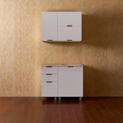 Кухонный гарнитур Аленушка 1 м с 3 ящиками Лотос Кашемир, скоба антрацит, сонома