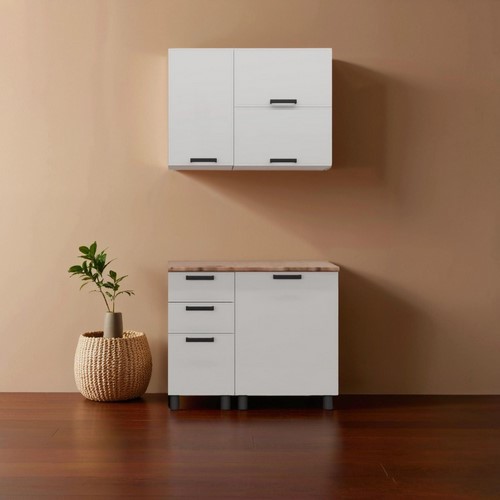 Кухонный гарнитур Аленушка 1 м с 3 ящиками Магнолия Молочный, скоба черный, сонома