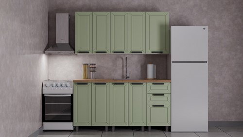 Кухонный гарнитур Аленушка 1,6 м Лилия Фиcташка/Фисташка, скоба черный, сонома