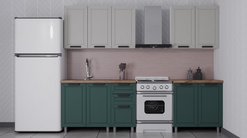 Кухонный гарнитур Аленушка 2 м Лилия Керамика/Изумруд, скоба черный, сонома
