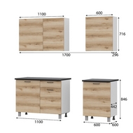Особенности: Готовая кухня Лаванда компактная и функциональная. Кухонный гарнитур сочетает в себе современный минимализм, эргономичность и надежность. Направляющие ящиков - роликовые. Максимальная нагрузка на ящик - 5 кг. Максимальная нагрузка на полку - 10 кг. Столешница в комплекте - 1700х600х26 мм.