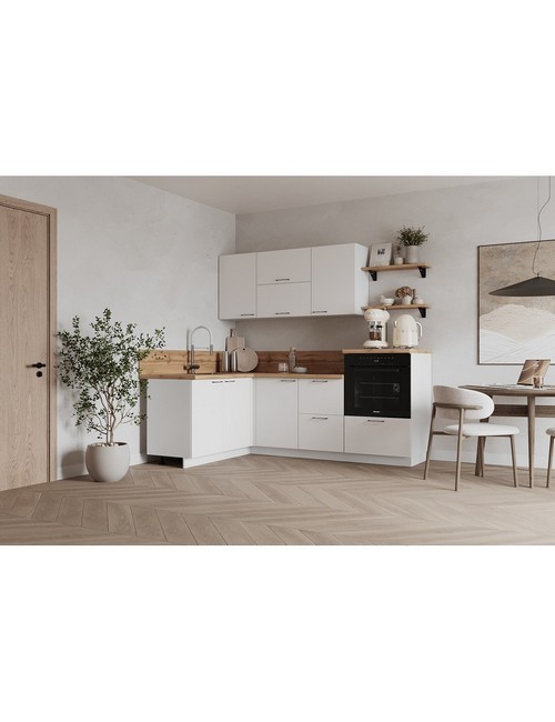 Технические характеристики: Кухонный гарнитур угловой 1500х2100 Лизет (белый софт матовый). Роскошный кухонный гарнитур с безупречными линиями и гармоничными пропорциями. Благородная палитра оттенков, выразительная текстура дерева и сдержанная эстетика, создающая атмосферу уюта и порядка. Направляющие Firmax с повышенным запасом прочности - свыше 60 000 циклов. Усиленные механизмы, выдерживающие нагрузку более 30 кг. Бесшумная и плавная работа всех движущихся элементов. Встроенная система Push to Open для скрытых ящиков, усиленное дно внутренних модулей для повышенной надежности. Высокий модуль под духовой шкаф для современного зонирования и регулируемые опоры для идеальной устойчивости. Цельная столешница без видимых стыков для простоты ухода, сменные металлические ручки, не требующие пересверливания. В кухонном гарнитуре угловом 1500х2100 Лизет коллекции Лизет каждая деталь, от премиальной фурнитуры до бесшовных поверхностей, создает кухню, которая станет не только функциональным пространством, но и источником вдохновения для всей семьи.
