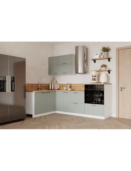 Технические характеристики: Кухонный гарнитур угловой 1500х2250 Олива эмаль вариант 4. Роскошный кухонный гарнитур с безупречными линиями и гармоничными пропорциями. Благородная палитра оттенков, выразительная текстура дерева и сдержанная эстетика, создающая атмосферу уюта и порядка. Направляющие Firmax с повышенным запасом прочности - свыше 60 000 циклов. Усиленные механизмы, выдерживающие нагрузку более 30 кг. Бесшумная и плавная работа всех движущихся элементов. Встроенная система Push to Open для скрытых ящиков, усиленное дно внутренних модулей для повышенной надежности. Высокий модуль под духовой шкаф для современного зонирования и регулируемые опоры для идеальной устойчивости. Цельная столешница без видимых стыков для простоты ухода, сменные металлические ручки, не требующие пересверливания. В кухонном гарнитуре угловом 1500х2250 Олива эмаль вариант 4 коллекции Лизет каждая деталь, от премиальной фурнитуры до бесшовных поверхностей, создает кухню, которая станет не только функциональным пространством, но и источником вдохновения для всей семьи.