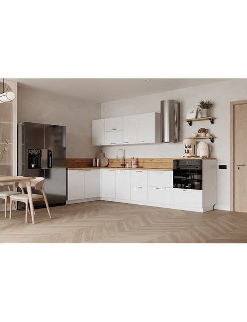 Технические характеристики: Кухонный гарнитур угловой 1500х3150 вариант 5 Лизет (белый). Роскошный кухонный гарнитур с безупречными линиями и гармоничными пропорциями. Благородная палитра оттенков, выразительная текстура дерева и сдержанная эстетика, создающая атмосферу уюта и порядка. Направляющие Firmax с повышенным запасом прочности - свыше 60 000 циклов. Усиленные механизмы, выдерживающие нагрузку более 30 кг. Бесшумная и плавная работа всех движущихся элементов. Встроенная система Push to Open для скрытых ящиков, усиленное дно внутренних модулей для повышенной надежности. Высокий модуль под духовой шкаф для современного зонирования и регулируемые опоры для идеальной устойчивости. Цельная столешница без видимых стыков для простоты ухода, сменные металлические ручки, не требующие пересверливания. В кухонном гарнитуре угловом 1500х3150 вариант 5 Лизет коллекции Лизет каждая деталь, от премиальной фурнитуры до бесшовных поверхностей, создает кухню, которая станет не только функциональным пространством, но и источником вдохновения для всей семьи.