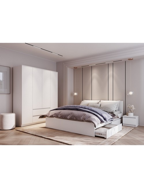 В комплекте: Шкаф для одежды и белья Симпл ШК-13, белый - ARN-BTS-00-00143424 - 1 шт. Тумба прикроватная Симпл ТБ-11, белый - ARN-BTS-00-00143419 - 1 шт. Кровать 1,6 Симпл КР-17 белый - 1 шт.