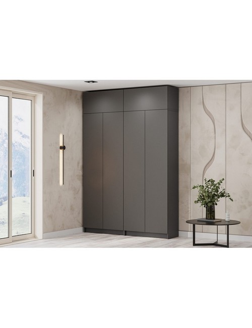 Технические характеристики: Модульный шкаф Бали, комплект 3 (графит серый). Многофункциональный мебельный ансамбль, создающий гармоничную систему хранения для современного интерьера. Комплект сочетает в себе лаконичный дизайн, продуманную организацию пространства и универсальность применения. Состав комплектации: два шкафа двухстворчатых и два шкафа верхних. Распашные дверцы с полным доступом к внутреннему пространству, многоуровневая система полок для рационального хранения и встроенная штанга для размещения одежды на плечиках. Допустимая нагрузка на полку - 5 кг. Модульный шкаф Бали, комплект 3 представляет собой сбалансированное решение для организации порядка в жилом пространстве. Благодаря нейтральному дизайну и практичной конструкции, он органично впишется в интерьер спальни, прихожей или гостиной, обеспечивая удобное хранение и поддерживая эстетическую гармонию помещения.