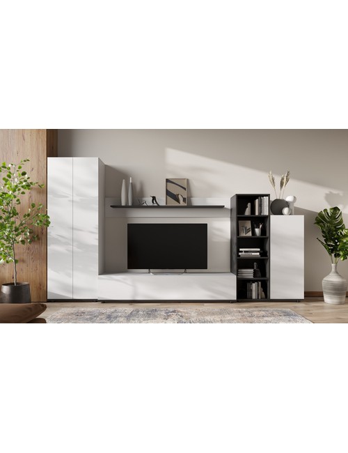 Технические характеристики: Набор для гостиной Amazon (белый матовый, черный матовый). Современный мебельный гарнитур, создающий элегантную и функциональную зону хранения в гостиной. Модель отличается лаконичным дизайном, качественной фурнитурой и продуманной организацией пространства. Система открывания Push-to-Open для плавного бесшумного доступа. Механизм газлифт для легкости использования вертикальных фасадов, классические петли без системы доводки. Стабилизирующие пластиковые опоры высотой 2 см. В комплекте шкаф для одежды и стенка в гостиную. Верхняя длинная полка для декоративных предметов не только расширяет пространство визуально, но и придает интерьеру завершенность и легкость. Открытый стеллаж позволяет разместить часто используемые вещи, любимые книги или элементы декора. Закрытые шкафы сохраняют атмосферу безупречного порядка, телевизионная тумба с тремя просторными отсеками для хранения различных предметов. Набор для гостиной Amazon гармонично сочетает современные технологии открывания, эргономичную организацию и нейтральную эстетику.