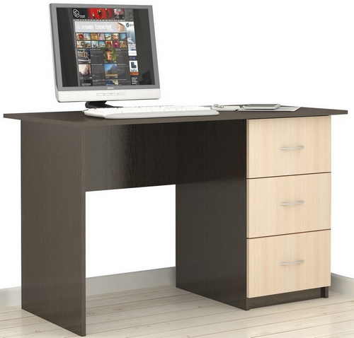 Технические характеристики: Стол оснащён тумбой с тремя выдвижными ящиками. Стол можно использовать как письменный или компьютерный. Поставляется в разобранном виде.