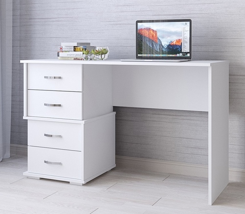 Дополнительно: Ищете недорогой письменный стол необычной формы? Обратите внимание на модель Сити-2. Универсальный белый цвет и оригинальная конструкция тумбы с ящиками делают модель хитом на мебельном рынке. Вы сможете организовать не только функциональное и комфортное для ежедневной работы, но и визуально привлекательное рабочее место. Четыре выдвижных ящика оснащены роликовыми направляющими.