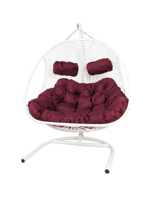 Подвесное кресло ДОБРЫНЯ с ротангом (белый с бордовой подушкой)