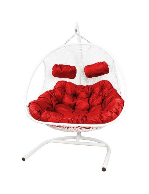 Подвесное кресло ДОБРЫНЯ с ротангом (белый с красной подушкой)