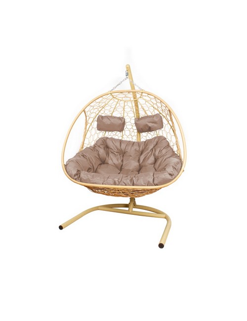 Подвесное кресло ДОБРЫНЯ с ротангом (бежевый с бежевой подушкой)