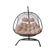 Подвесное кресло ДОБРЫНЯ с ротангом (черный с бежевой подушкой)