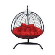 Подвесное кресло ДОБРЫНЯ с ротангом (черный с красной подушкой)