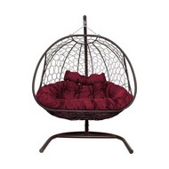 Подвесное кресло ДОБРЫНЯ с ротангом (коричневый с бордовой подушкой)