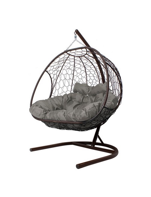 Подвесное кресло ДОБРЫНЯ с ротангом (коричневый с серой подушкой)
