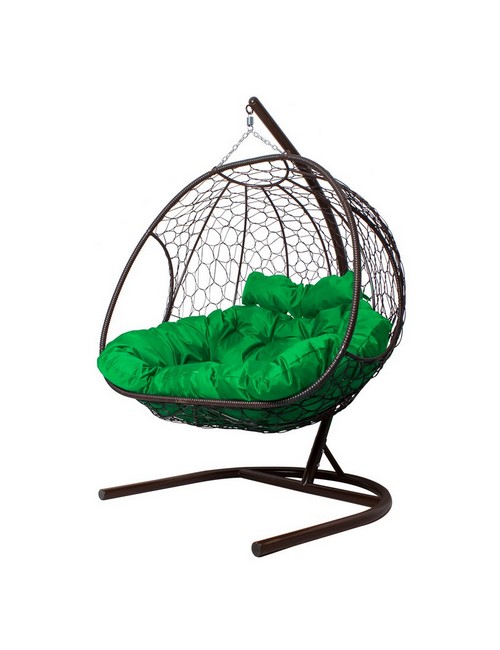 Подвесное кресло ДОБРЫНЯ с ротангом (коричневый с зеленой подушкой)