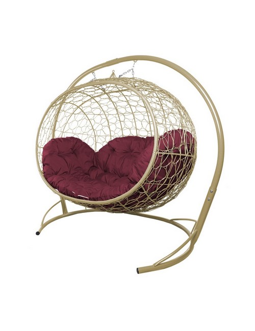 Подвесной диван УЛЕЙ с ротангом (бежевый с бордовой подушкой)