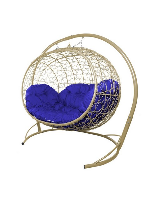 Подвесной диван УЛЕЙ с ротангом (бежевый с синей подушкой)