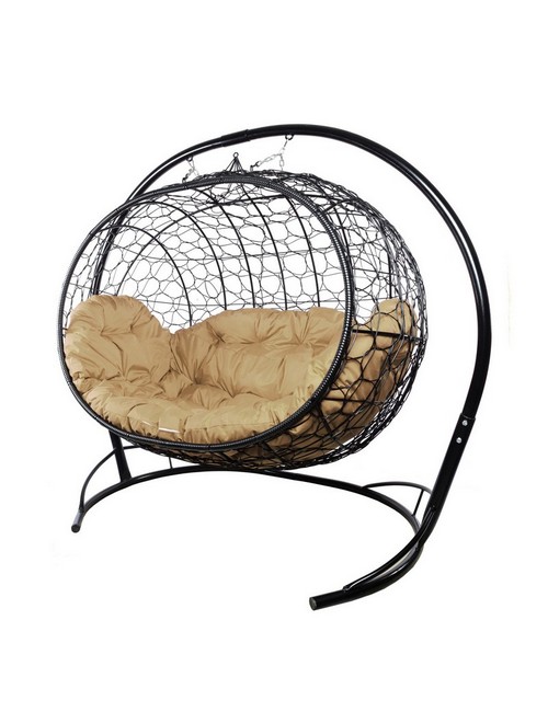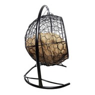 Подвесной диван УЛЕЙ с ротангом (черный с бежевой подушкой)