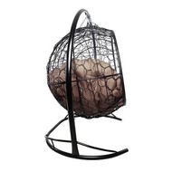 Подвесной диван УЛЕЙ с ротангом (черный с коричневой подушкой)