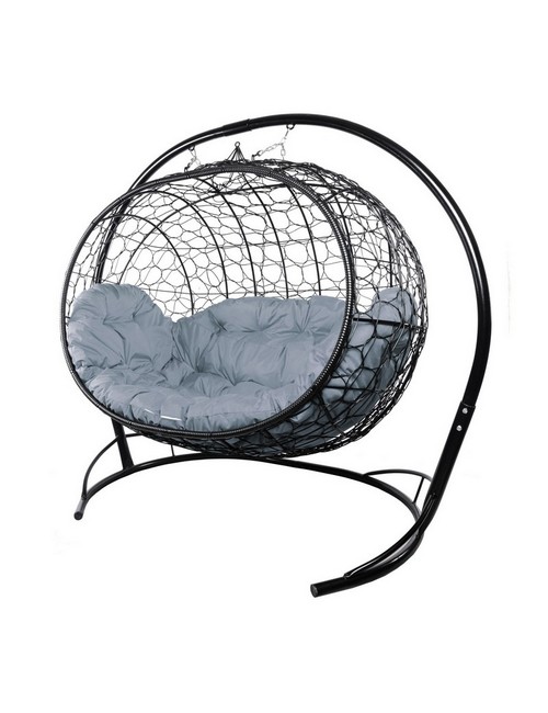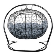 Подвесной диван УЛЕЙ с ротангом (черный с серой подушкой)