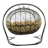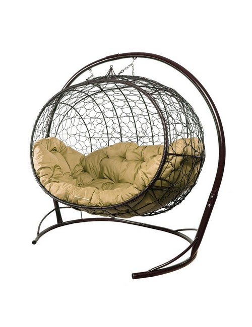 Подвесной диван УЛЕЙ с ротангом (коричневый с бежевой подушкой)