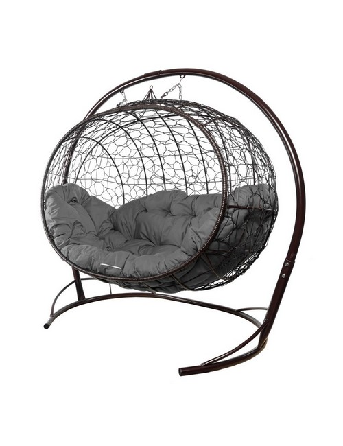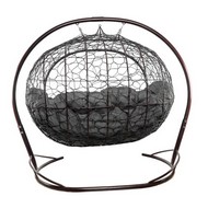 Подвесной диван УЛЕЙ с ротангом (коричневый с серой подушкой)