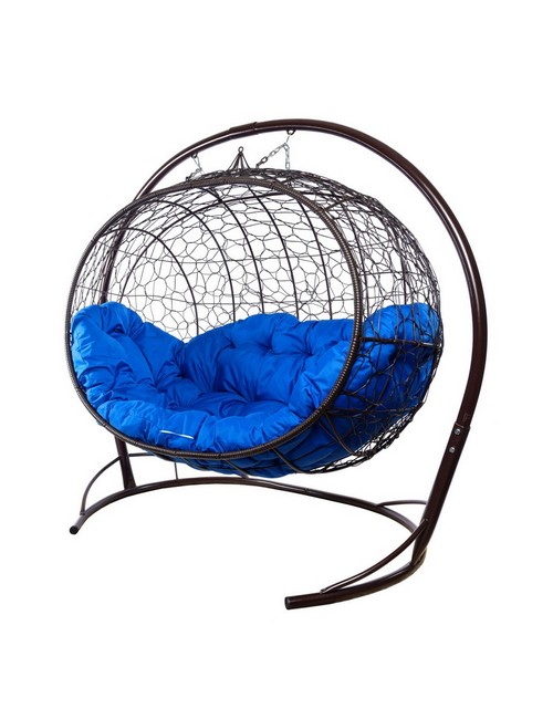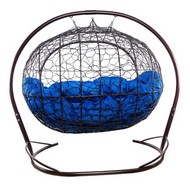 Подвесной диван УЛЕЙ с ротангом (коричневый с синей подушкой)