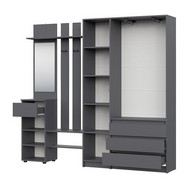 Технические характеристики: Прихожая Бали комплект 12 (графит). Функциональный мебельный гарнитур для прихожей, ориентированный на создание обширной и хорошо организованной системы хранения. Включает вешалку с зеркалом и трехстворчатый шкаф. Шкаф оснащен распашными дверцами, а ящики вешалки и трехстворчатого шкафа - роликовыми направляющими. Комплект обеспечивает раздельное хранение для всех категорий вещей: от объемной одежды и обуви до аксессуаров и сезонных предметов, создавая при этом целостную и упорядоченную композицию. Прихожая Бали комплект 12 - это решение для просторных прихожих, где необходима максимальная вместительность и четкая систематизация, воплощенная в сдержанном современном дизайне.