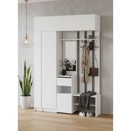 Технические характеристики: Прихожая Бали комплект 15 (белый). Функциональный мебельный ансамбль для прихожей, создающий упорядоченное и стильное пространство с системой хранения. В комплектацию входит: вертикальный пенал для хранения, вешалка с зеркалом для ежедневного использования, угловой элемент для рационального использования пространства и два верхних шкафа для сезонных вещей. Ящики на роликовых направляющих. Набор предлагает полную организацию прихожей: от размещения верхней одежды и обуви до хранения аксессуаров и демонстрации декора, сохраняя ощущение легкости благодаря своему цвету и модульной конструкции. Прихожая Бали комплект 15 - это готовое решение для создания гармоничного и практичного интерьера, идеально подходящее для современных квартир, где ценится порядок и эргономика.