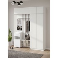 Технические характеристики: Прихожая Бали комплект 22 (белый). Сбалансированный мебельный ансамбль для средней прихожей, создающий функциональную зону для хранения и подготовки к выходу. Включает вешалку с зеркалом, навесной шкаф, двухстворчатый шкаф и широкий навесной модуль. Все шкафы имеют распашные дверцы, а ящики вешалки — роликовые направляющие для удобного использования. Комплект решает ключевые задачи: размещение верхней одежды и аксессуаров, хранение обуви и сезонных вещей, а также создание удобной зоны с зеркалом. Прихожая Бали комплект 22 — это практичное и эстетичное решение для современного интерьера, где необходимо компактно организовать пространство, сохранив ощущение порядка и легкости.
