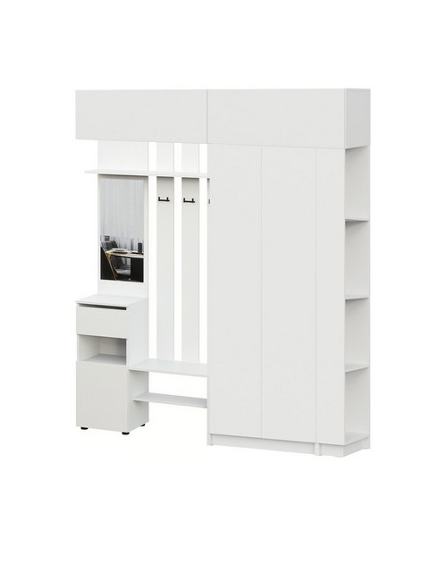 Технические характеристики: Прихожая Бали комплект 23 (белый). Сбалансированный мебельный ансамбль для прихожей, создающий функциональную зону с акцентом на навесное хранение. Включает вешалку с зеркалом, двухстворчатый шкаф, два широких навесных модуля и угловой элемент. Шкафы оснащены распашными дверцами, а ящики вешалки — роликовыми направляющими для удобного доступа. Комплект позволяет эффективно распределить верхнюю одежду и обувь в нижней зоне, разместить сезонные или редко используемые вещи наверху и рационально использовать угол, создавая при этом визуально легкую и упорядоченную композицию. Прихожая Бали комплект 23 — это практичное решение для современного интерьера, идеально подходящее для тех, кто ценит четкую организацию, модульность и лаконичный дизайн.
